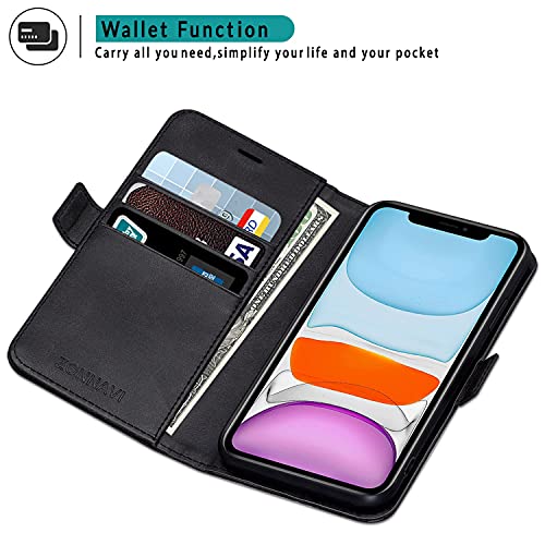 ZONNAVI Cover per iPhone 11, Flip Caso in PU Pelle con [Slot per Schede] [Kickstand] [Magnetica], Premium Portafoglio Custodia per iPhone 11 (Nero)