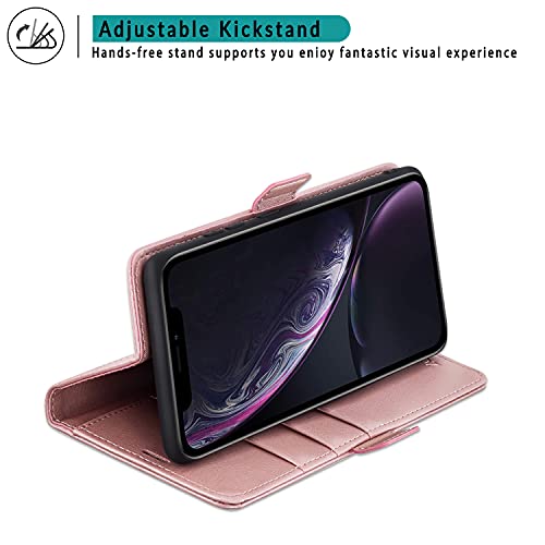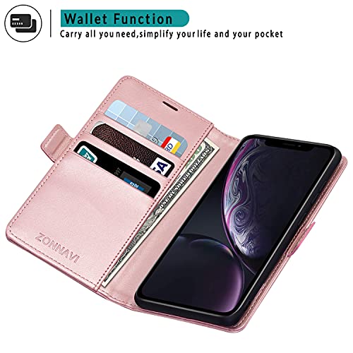 ZONNAVI Cover per iPhone XR, Flip Caso in PU Pelle con [Slot per Schede] [Kickstand] [Magnetica], Premium Portafoglio Custodia per iPhone XR (Rosa)