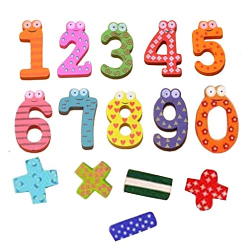 Il pacchetto include 15pcs Lettere di legno e magneti aritmetici di simbolo in colore brillante.