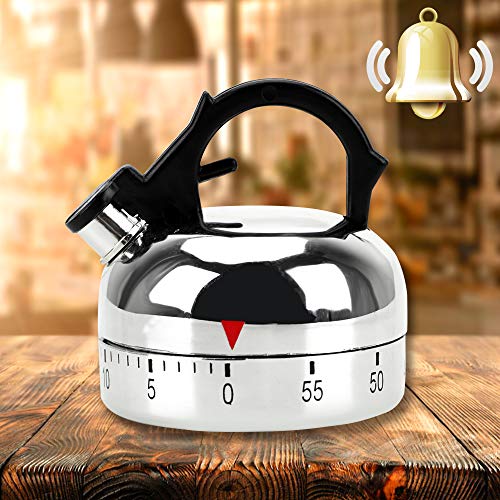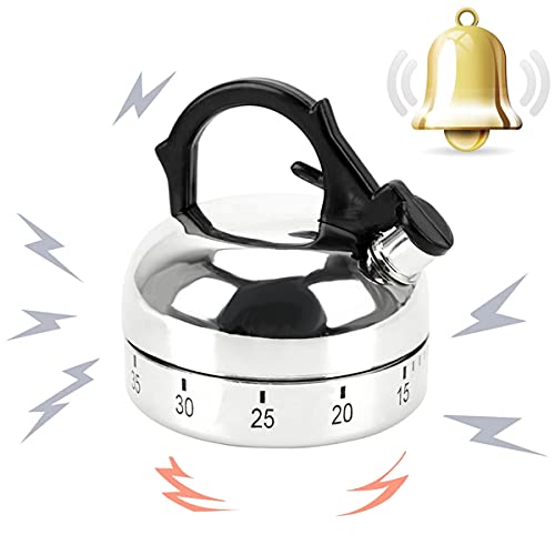 ZONSUSE Timer da Cucina Manuale,Acciaio Inossidabile Timer per le Uova,Timer Meccanico,Con Allarme Meccanico Rotante,Timer da Cucina per 60 Minuti,Cucinando,Doccia,Bagno,Bambini,Insegnante (Bollitore)