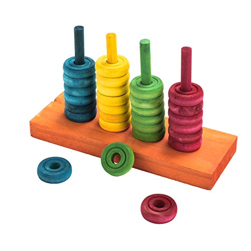 Il giocattolo contiene 28 anelli, 7 ciascuno dei 4 colori giallo, verde, blu e rosso.