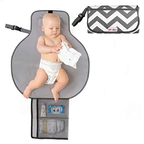 Zooawa Portable Diaper Changing Pad Mat Waterproof Folding Station Clutch Travel Carrying Bag for Baby Infants, Gray Stripe