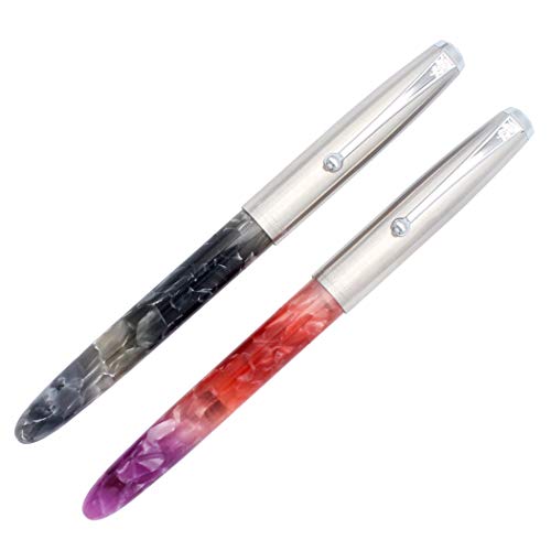 Zoohot 2 pezzi Jinhao 51A celluloide acrilica Penne Stilografiche pennino extra fine e cappuccio in acciaio inossidabile (Grigio Sfumato, Viola Rosso)