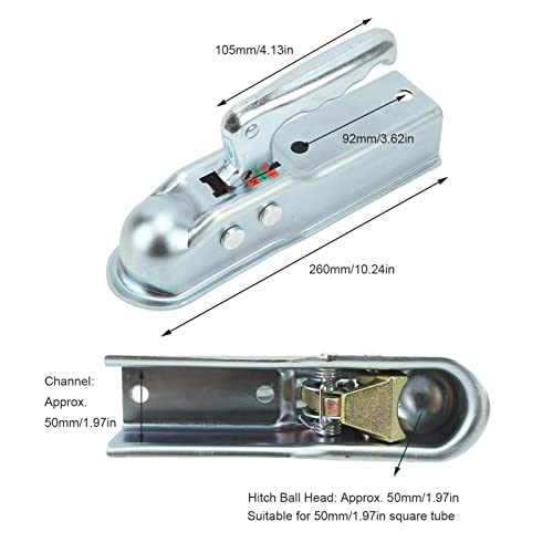 Caratteristica: questo accoppiatore per rimorchio a linguetta dritta è progettato con una testa a sfera con attacco da 50 mm, larghezza del canale di coda di 50 mm, adatto per tubo quadrato da 50 mm.