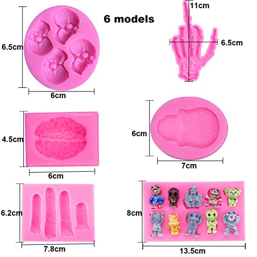ZOOMPIL Forma di Teschio Stampi in Silicone, Stampo Teschio 3D, Stampi per Cioccolatini in Silicone con Teschio, per fai da te, gelatina, teschio, cioccolato, decorazione di torte (6 pezzi)