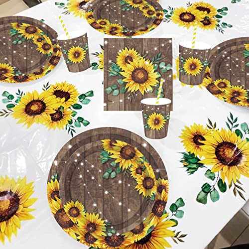 ZOOMPIL Stoviglie per Feste, 70 Pezzi Piatti Compleanno Bambina, Stoviglie per Feste Girasole Inclusi Piatti, Tazze, Tovaglioli, Cannuccia, Tovaglie, per Baby Shower Decorazioni per Feste 8 Ospiti