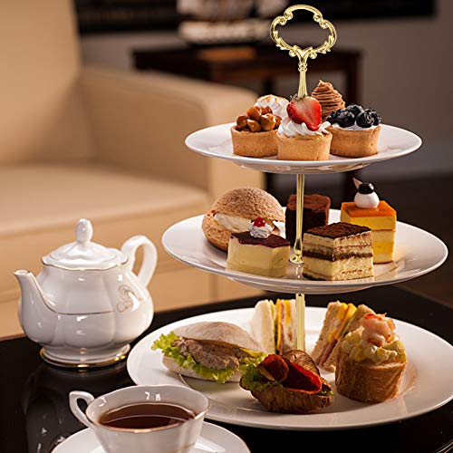 ZoomSky Alzata per Torta, 4 Set 2 o 3 Livelli Supporto per Dessert Maniglia di Supporto per Cupcake Design Floreale Oro per Il tè pomeridiano