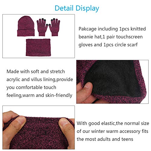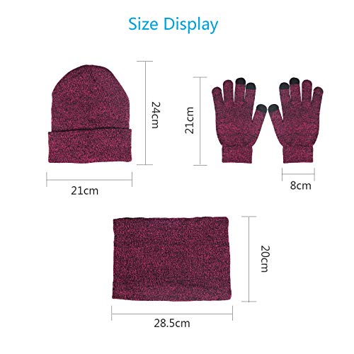 ZoomSky Invernale Cappello Sciarpa Set,3 Pezzi Viola Sciarpa Cappello Guanti Cappello Set Invernale Stai al Caldo Prevenire il Vento Maglieria Felpa All'aperto Sci