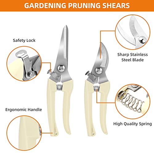 【Forbici da potatura 2 pezzi】 - Vieni con 2 forbici da giardino per la potatura delle piante. Acciaio inossidabile resistente alla ruggine e durevole per un taglio facile e regolare. Meccanismi di bloccaggio professionali per tenerlo ben chiuso quando non in uso.
