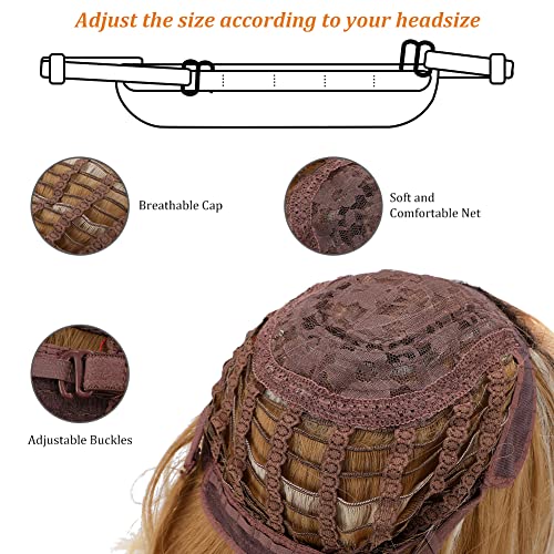 Zootop Parrucca con frangia, Parrucche sintetiche da marrone a biondo con frangia Parrucche realistiche da 20 inch per donne Parrucche bionde lunghe resistenti al calore per feste cosplay quotidiane