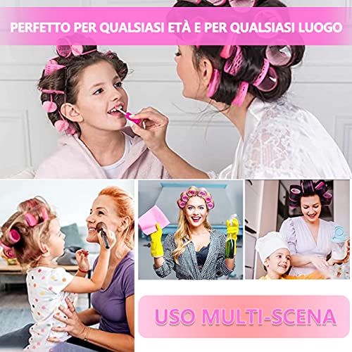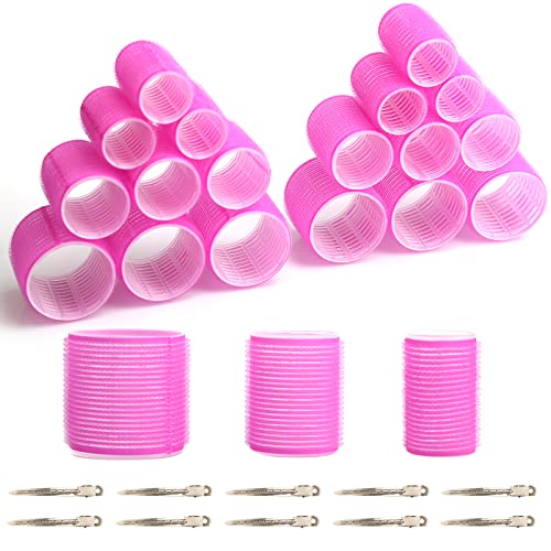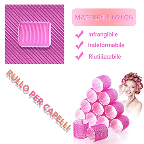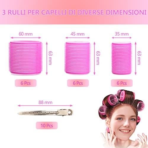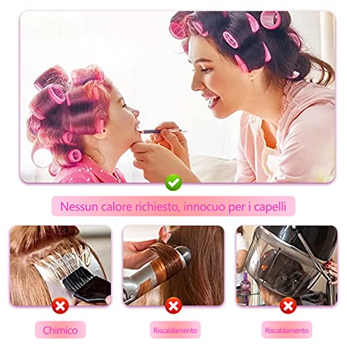 ZOOTSING 18 Pezzi Bigodino Set, 3 Misure Bigodini per Capelli Grandi Ricci, Bigodini Grandi Rulli, Bigodini in Velcro, Bigodini per Capelli Autoadesivi per Salone Lungo Medio Corto, Rosa