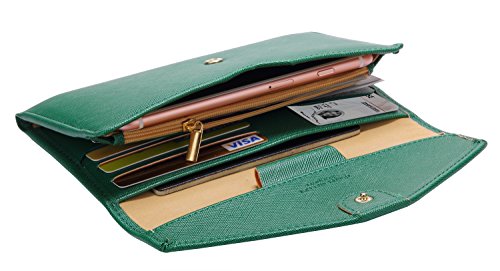 Zoppen, portafoglio portadocumenti multiuso, con sistema di blocco RFID (Ver.4), pieghevole in tre parti, Dark Green (Verde) - TG001