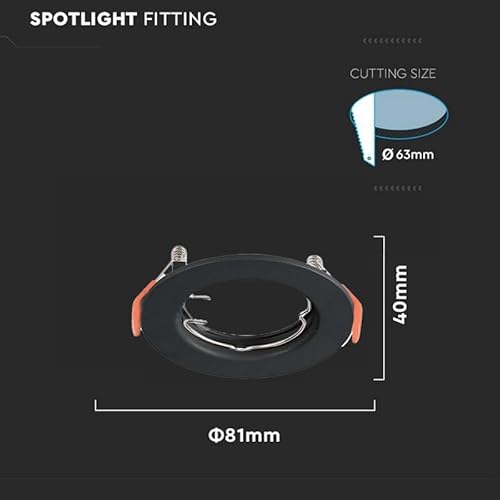 ZOREI 10 Pezzi Portafaretti GU10, Porta Faretti Da Incasso, Modello Fisso Con Molla, Foro 65mm, Rotondo e Quadrato, Portalampade Escluso (Rotondo D81XH40mm, Nero)