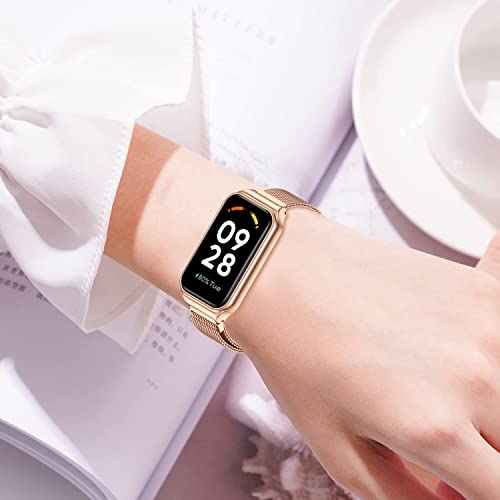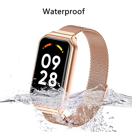ZoRoll Cinturino Compatibile con Xiaomi Smart Band 8 Active / Redmi Smart Band 2, Inossidabile Intrecciato a Rete Metallo con Cinturino in Acciaio Compatibile con Xiaomi Redmi Smart Band 2 - Oro Rosa