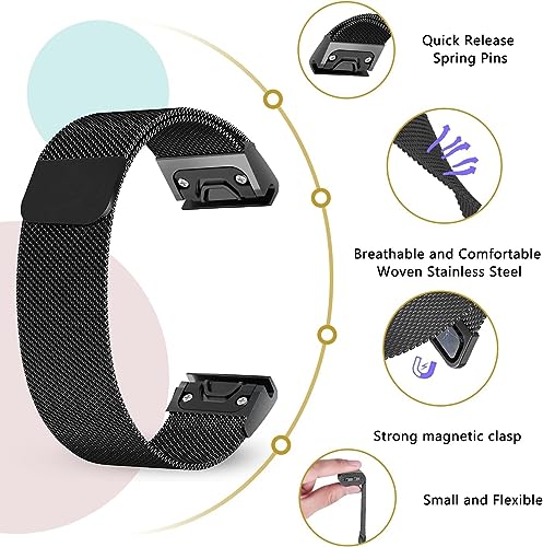 ZoRoll Cinturino QuickFit 20mm Compatibile con Garmin Fenix 7S /Fenix 6S/Fenix 6S pro, Metallo con Cinturino in Acciaio Inossidabile Intrecciato a Rete Compatibile con Garmin Fenix 5S/5S Plus - Nero