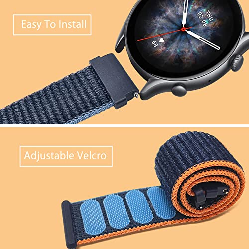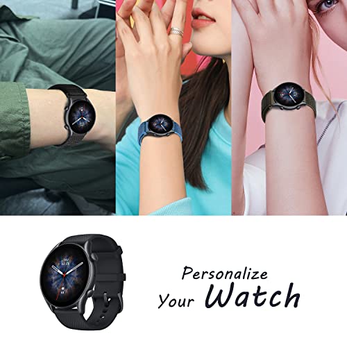 ZoRoll 3 Pezzi 22mm Cinturino per Amazfit Cheetah PRO/Cheetah/Bip 5/GTR 3 PRO/GTR 3/GTR 2e/GTR 2, Nylon Ricambio Bracciale per Amazfit GTR 47mm/Huawei Watch GT 3 PRO 46mm - Nero+Verde Militare+Blu