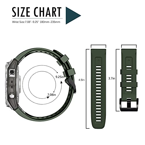 ZoRoll 26mm QuickFit Cinturino Compatibile con Garmin Fenix 7X/Fenix 6X GPS/Fenix 6X PRO/5X GPS/5X Plus, Silicone Sportivo Ricambio in Braccialetto Compatibile con Garmin Descent mk1/mk2 - Army Green