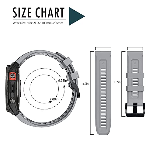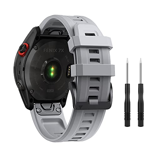 ZoRoll 26mm QuickFit Cinturino Compatibile con Garmin Fenix 7X/Fenix 6X GPS/Fenix 6X PRO/5X GPS/5X Plus, Silicone Sportivo Ricambio in Braccialetto Compatibile con Garmin Descent mk1/mk2 - Grigio