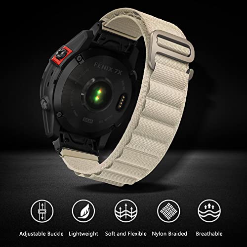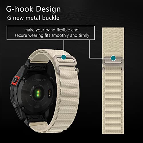 ZoRoll 26mm QuickFit Cinturino per Garmin Fenix 7X/Fenix 6X GPS/Fenix 6X PRO/5X GPS/5X Plus, Nylon G-Hook Regolabile Sportivo Bracciale per Garmin Descent mk1/Descent mk2/Descent mk2i - Bianca