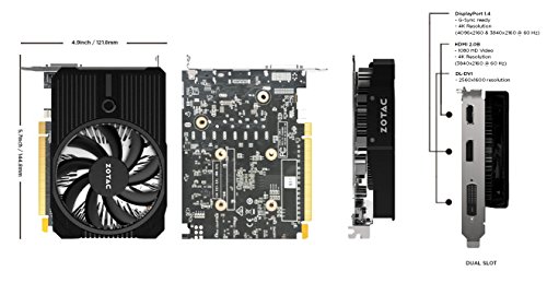 ZOTAC Scheda Video GeForce GTX 1050 Mini, 2GB GDDR5, Clock base 1354 MHz, CUDA cores 640, DisplayPort 1.4, HDMI 2.0b, DL-DVI