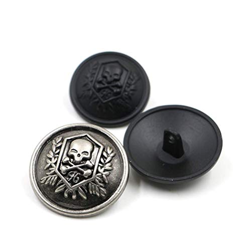 ZoTuoART Bottoni in metallo con motivo a teschio intagliato e ossa incrociate, bottoni rotondi da cucire, bottoni di ricambio per cappotti, abiti, frangivento argento 15 mm/12 pezzi