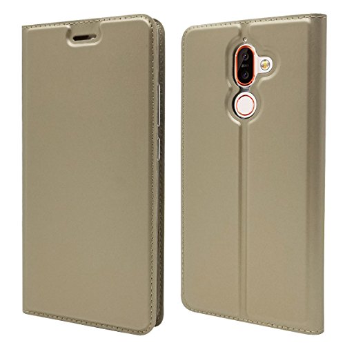 Custodia Ultra Sottile in Pelle PU con Chiusura Magnetica/Funzione cavalletto/Slot per Porta Carte Nokia 7 Plus,d'oro