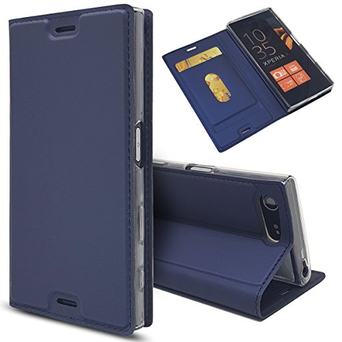 Custodia Ultra Sottile in Pelle PU con Chiusura Magnetica/Funzione cavalletto/Slot per Porta Carte Sony Xperia X Compact,Blu