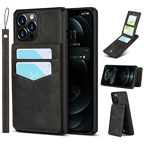 Zouzt Custodia per slot multi-scheda per iPhone 12 pro Maxcaso Custodia a portafoglio con cinturino da mano 7 porta carte di credito Custodia in pelle PU Premium Cavalletto, Cover (Nero)