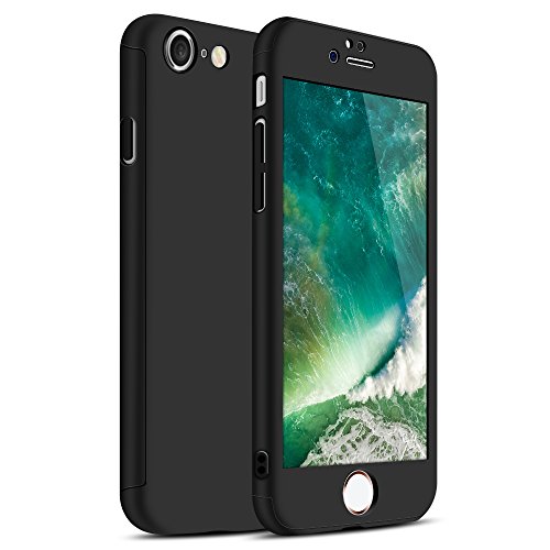 Zouzt iPhone 7 Caso, iPhone 8 Caso, a 360 Gradi Copertura Completa Custodia Corpo con Vetro temperato Protezione dello Schermo-Nero