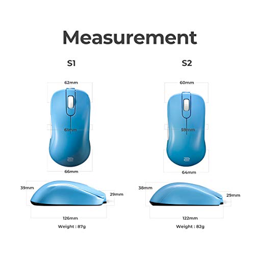 Zowie S1 Divina Version Gaming Mouse e-Sports, Grandi Dimensioni, 5 Pulsanti, 400/800/1600/3200 DPI,3360 Sensor, Progetto Divina, Blu, 126 x 62 x 39 mm
