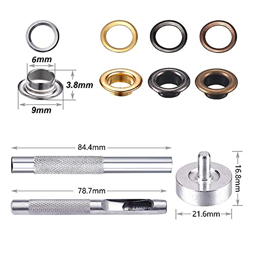 Zoyay 400 Pezzi Occhielli Strumento Kit per Teloni, Grommet Kit con Strumenti di Installazione e Scatola di Stoccaggio per Teloni Borse Scarpe Abbigliamento(1/4 Pollici)-A_6mm