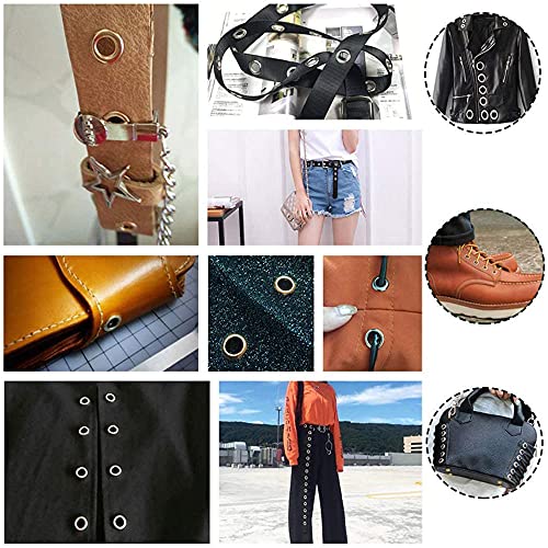 Gommommet Eyelets Kit: 400 Set Gommommets in 4 colori: Gold, Gunmetal, Bronzo e Argento (100 set per colore) 3pcs Gli utensili di gommino includono 1 base + 1 Punch + 1 Strumento di installazione + 1 scatola di immagazzinaggio trasparente.