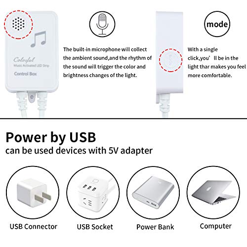 Strisce di luci per interni ed esterni: prodotto realizzato in materiale impermeabile IP65, è possibile utilizzarlo all'aperto senza preoccuparsi di danneggiare la luce. Si prega di fare attenzione poiché il controller musicale e l'alimentatore non sono impermeabili. Questa striscia luminosa a LED è perfetta per bar, ristorante, KTV, matrimoni, feste all'aperto, soggiorno, ecc.