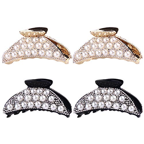 ZOYLINK 4PCS Clip Artiglio Per Capelli Di Perle Jaw Clip Morsetto Per Capelli Antiscivolo Con Strass Per Donna