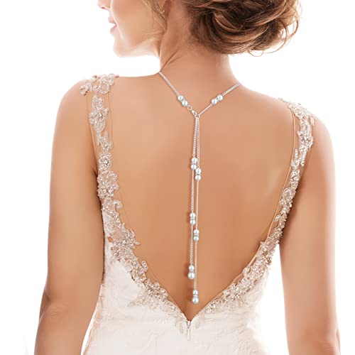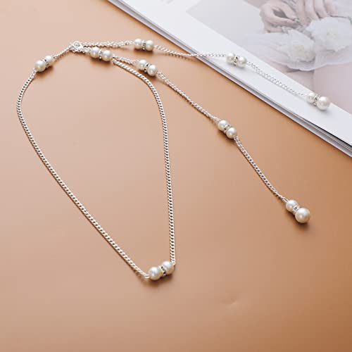 ZOYLINK Collana con perle per la schiena da donna, collana di perle, gioiello da sposa, gioiello per matrimonio, retro in argento, collana per ragazze e donne