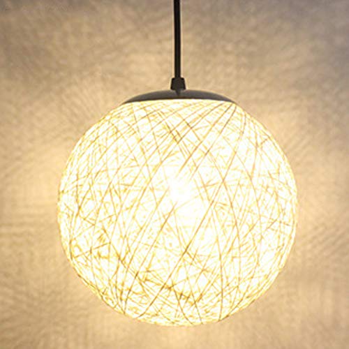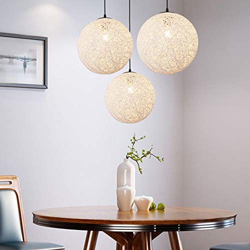 Zozmy Lampada a Sospensione Moderna Rattan Tondo Sala da Pranzo Lampadario Regolabile in Altezza Creativo Palla Colorata Chandelier E27 Soggiorno Camera dei Bambini Bar Caffetteria Ø20cm,Bianca