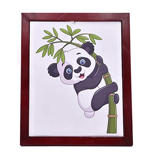 Mostri una foto della scalata di Panda su un bambù, incorniciata da una bella cornice di legno.