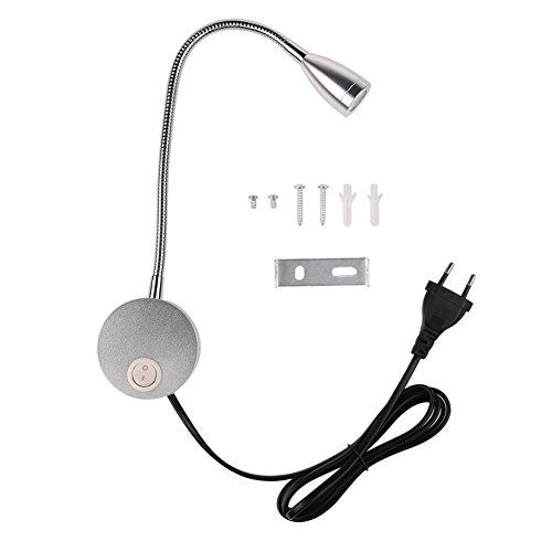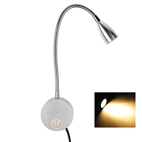 ZSBBD Prenota luce Lampada da Parete 3W LED, Collo di Cigno Luce di Lettura Notte Lampada di Illumin con Interruttore per Camera da Letto Soggiorno Lampada da Comodino Prenota luce con 1.8M Linea