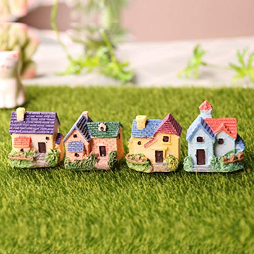 ZSooner, casetta delle bambole in miniatura, 4 pezzi, decorazione da giardino, statuette fai da te, piccole ville, regalo di compleanno, micro paesaggio, bonsai in resina per CHIldren stile europeo