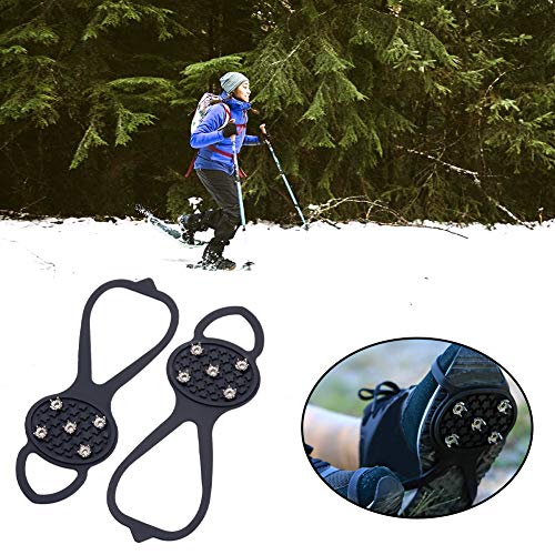 Alta qualità: i nostri tacchetti per ghiaccio sono realizzati in silicone resistente con elevata flessibilità ed elasticità, non si strappano o si rompe nella stagione fredda. I nostri ramponi antiscivolo addensano e allargano il silicone intorno al chiodo in acciaio, che fissa saldamente i chiodi in acciaio e offre maggiore supporto e stabilità. I tacchetti aggressivi impediscono di scivolare e cadere su ghiaccio, neve e marciapiedi bagnati. Il materiale durevole e riciclabile ti promette un'avventura invernale più sicura.