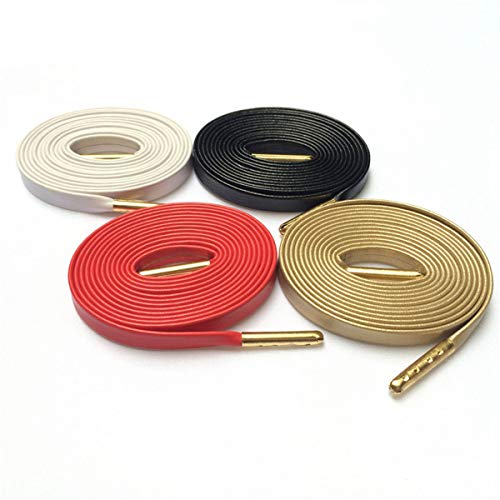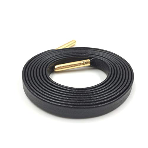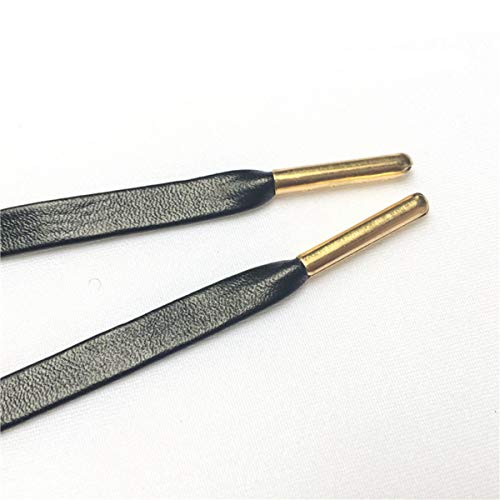 ZssmGood Lacci piatti in pelle 70 cm 180 cm Lacci in pelle di capra oro bianco nero rosso per lacci scarpe Sneaker, punte oro nero, 180 cm