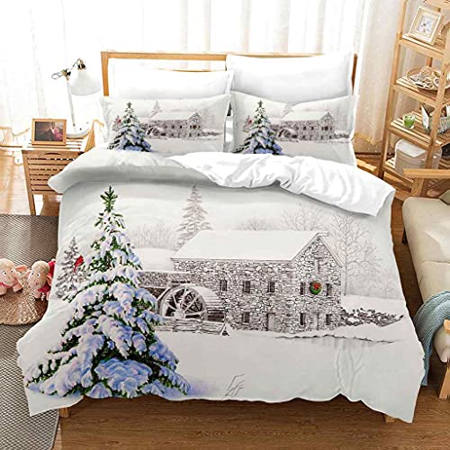 ZSZCDU Completo Parure Copripiumino Matrimoniale 260x220 cm Microfibra Casetta natalizia bianca Federa 50x80 cm Set Sacca Sacco Copripiumone facile da pulire