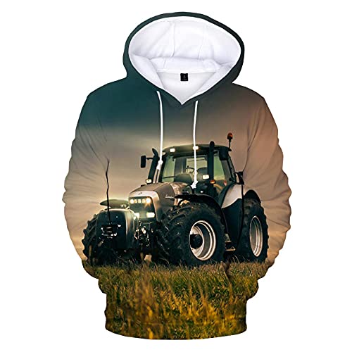 ZTIANEF Felpa con Cappuccio per Ragazzi alla Moda Stampata in 3D realistica Unisex da Uomo con Motivo a Trattore