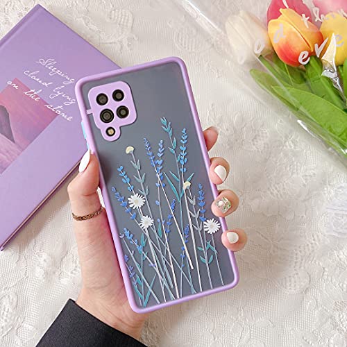 ZTOFERA Cover Posteriore in TPU per Samsung A12 / M12, Semplice Custodia in Silicone Liquido Traslucido con Motivo Floreale, Custodia Antiurto per Samsung Galaxy A12 5G - Viola Chiaro