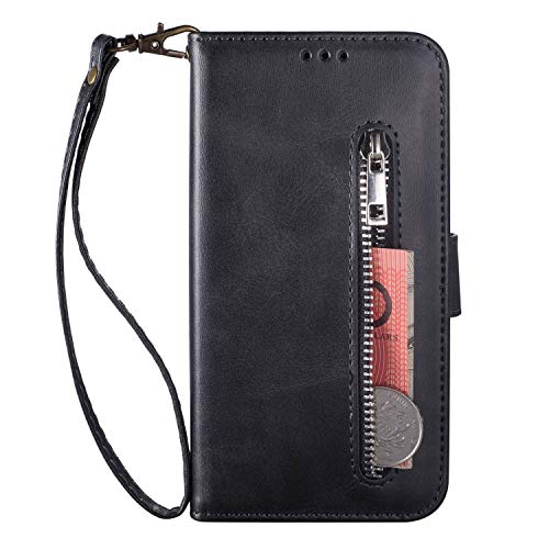 ZTOFERA Custodia a Portafoglio per Samsung Galaxy A20E, Custodia Protettiva in Pelle PU Custodia Tasca con Cerniera Magnetica Flip Stand Case Cover per Samsung Galaxy A20E - Nero