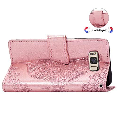 ZTOFERA Custodia Flip per Samsung S8, Custodia a Portafoglio con Motivo Farfalla in Rilievo con [Chiusura Magnetica Slot per Schede], Cover Sottile per Samsung Galaxy S8 - Oro Rosa