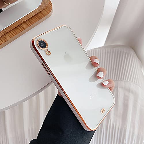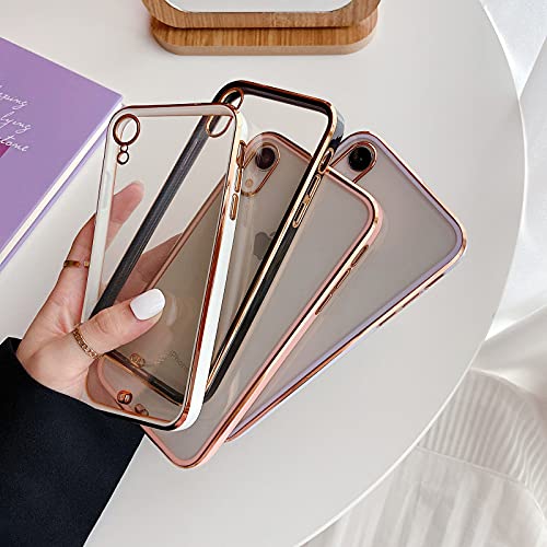 ZTOFERA Custodia Ultra Hybrid per iPhone X/iPhone XS, Custodia Morbida in TPU con Bordo Dorato e Retro Trasparente, Cover Bumper Flessibile Antiurto per iPhone X/XS - Bianco