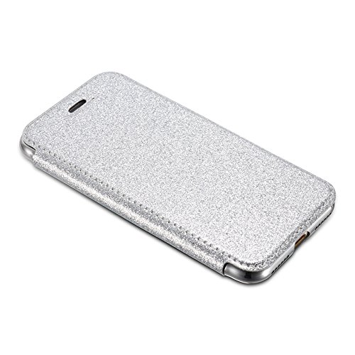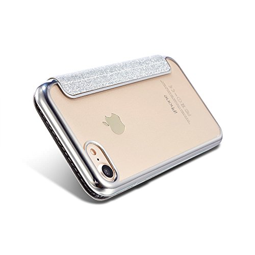 ZTOFERA Pelle Cover Custodia iPhone 7 Plus iPhone 8 Plus 5.5 pollice,Premio Bling Glitter Luccichio Antigraffio [Chiaro Schiena] Antiurto TPU Paraurti Placcatura Cromo Pelle Flip Portafoglio Case Cover per iPhone 7 Plus/iPhone 8 Plus [5.5 pollice][Argento]