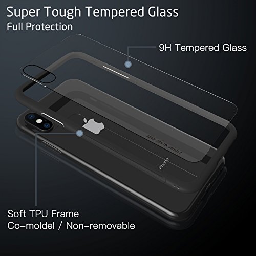 Ztotop Custodia per iPhone XS/X, Case con Cover Posteriore in Vetro temperato Trasparent Clear 9H AntiGraffio, Anti-Shock e Cornice Profilo Resistente agli Urti Spessa Soli 0.3mm - Cornice Nero
