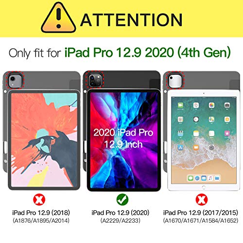 [Design professionale]: Auto Wake/Sleep sensibile, copertura frontale a tre pieghe con doppia posizione in piedi. Struttura solida ma non ingombrante, ritagli precisi facilmente accesso a tutti i pulsanti. Lascia che il tuo iPad Pro 12.9 2020 si adatti perfettamente alla custodia.